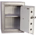 The B-Rated Dial Lock Cash Safe has an interior steel compartment that measures 19 3/4" (Height) x 14 3/4" (Width) x 12" (Depth) where you can store a number of valuables, including credit cards, passports, jewelry, and cash. The 1/2" thick door contains an active spring-loaded re-locker, chrome-plated solid steel locking bolts, and a steel plate for added security. An adjustable shelf is included and four (4) pre-drilled holes at the bottom of the safe come standard, allowing you to bolt the safe inside a closet or cabinet.